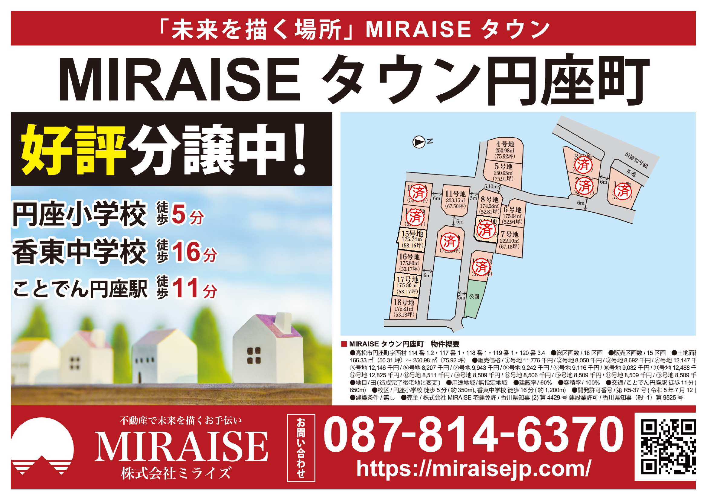 円座小学校 徒歩5分、香東中学校 徒歩16分、ことでん円座駅 徒歩11分